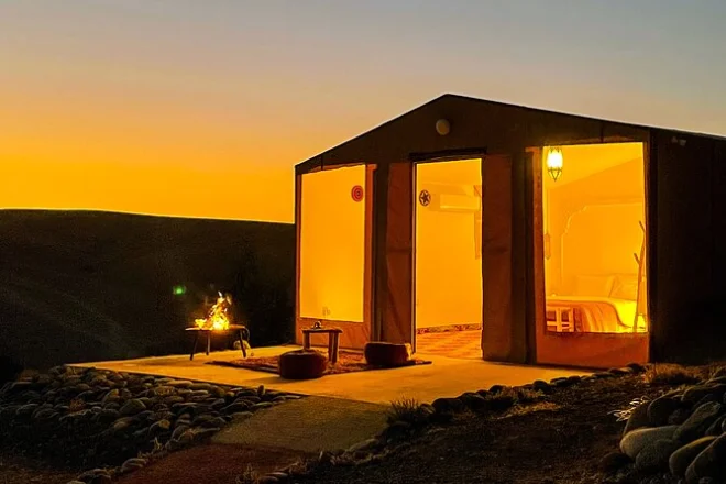 Puedes elegir entre una tienda deluxe privada (haima) o una tienda compartida tipo dormitorio al reservar.