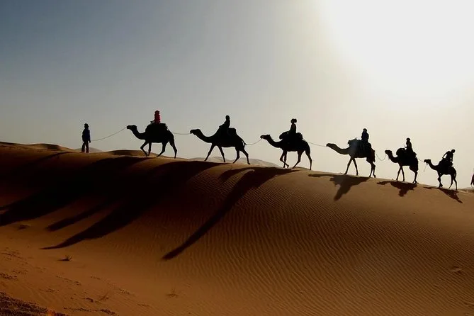 Tu vehículo privado con aire acondicionado incluye un conductor-guía experimentado que conoce todos los atajos entre Fez y Marrakech. Tendrás una tienda privada con baño en nuestro campamento de lujo en Merzouga (sin pasar penurias), además de una habitación encantadora en las Gargantas del Dadès con baño propio. El paseo en camello está incluido —y si te animas, también sandboarding. Todos los desayunos y cenas están cubiertos; solo trae ganas de aventura (y quizás algún snack para los trayectos largos).