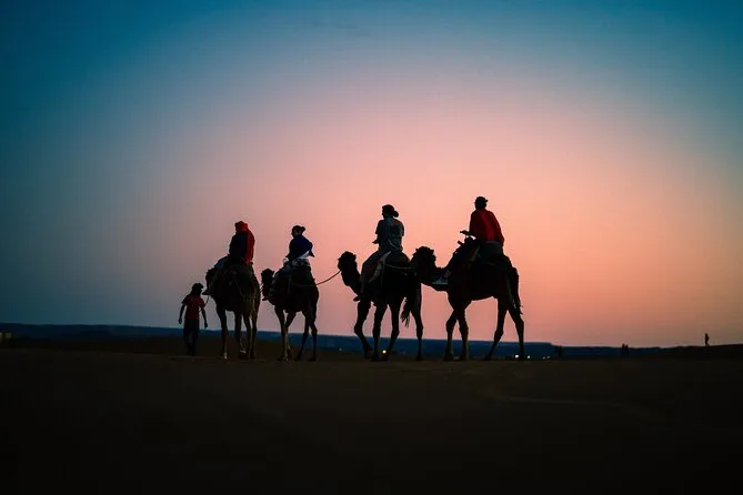 Sí, los paseos en camello al atardecer y al amanecer están incluidos para cruzar las dunas cerca de Merzouga.