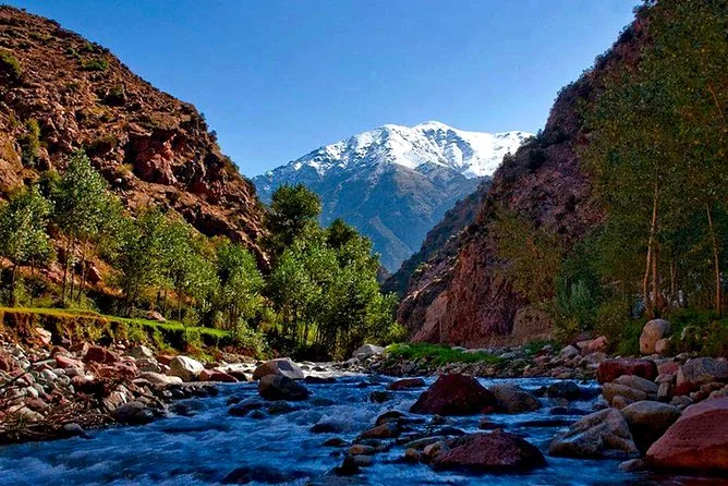 Cambia el ruido de la ciudad por el aire fresco de la montaña en esta excursión desde Marrakech: recorre pueblos bereberes con guía, observa cómo las mujeres hacen aceite de argán a mano, sube hasta las cascadas de Setti Fadma (sí, vale la pena) y disfruta un tagine junto al río con los pies en el agua. Prepárate para risas, sabores nuevos y quizá un poco de barro en los zapatos.