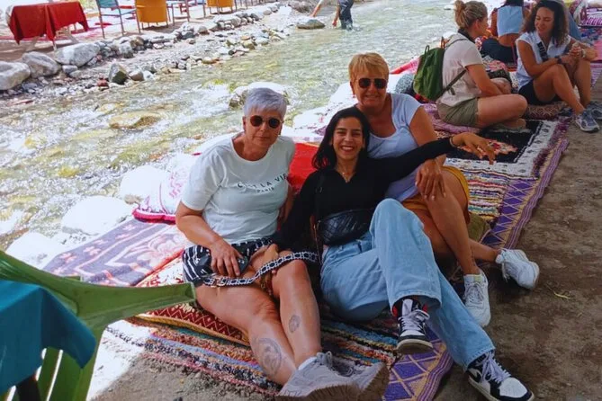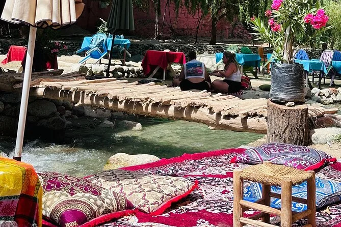 Tu día incluye recogida en tu hotel o punto de encuentro en Marrakech, transporte cómodo con conductor profesional por las faldas del Atlas, paradas en pueblos bereberes y una cooperativa de mujeres que producen aceite de argán (donde verás el proceso tradicional), una caminata guiada hasta las cascadas de Setti Fadma con tiempo para fotos o descansar, y finalmente una hora para relajarte con un almuerzo junto al río antes de volver a la ciudad.