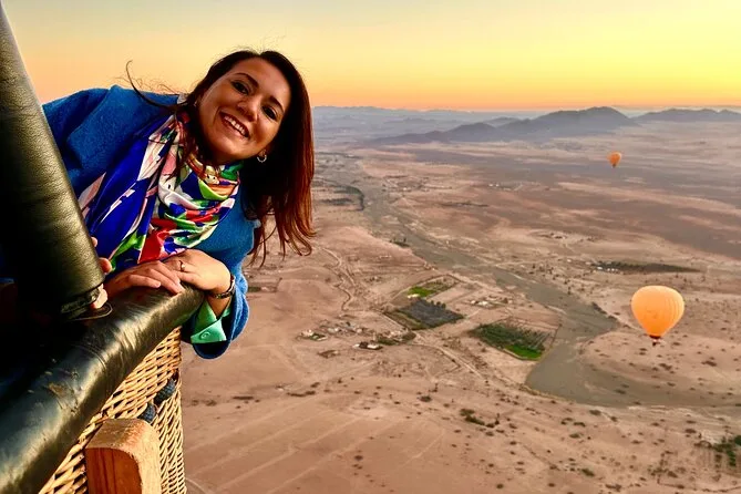 Flotando sobre Marrakech mientras el sol rompía sobre las colinas — no podía dejar de pensar en lo tranquilo que estaba todo allá arriba. Los valles abajo se teñían de rosa y naranja, y se veían pequeños pueblos despertando. Youssef nos contó historias de su infancia por aquí; señaló un olivar que aún cuida su tío. Hubo un momento en que la luz iluminó justo una cresta y todos nos quedamos en silencio, salvo por el clic de alguna cámara de móvil (yo también caí en eso).