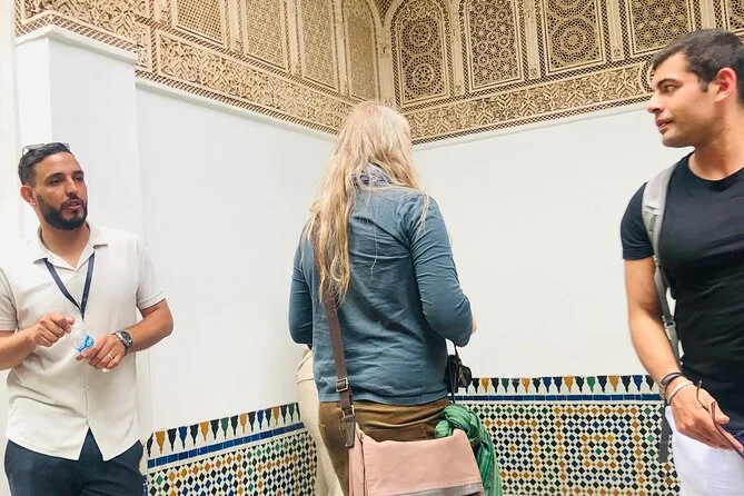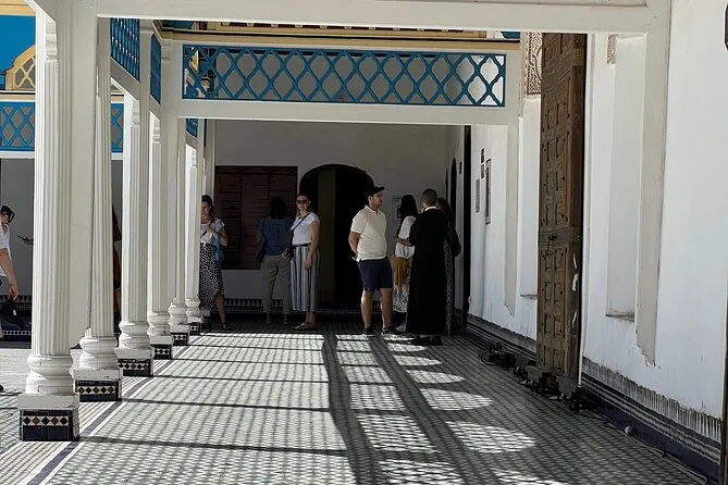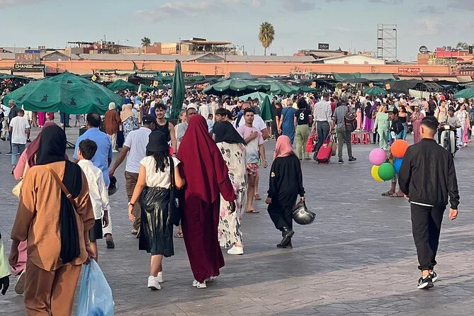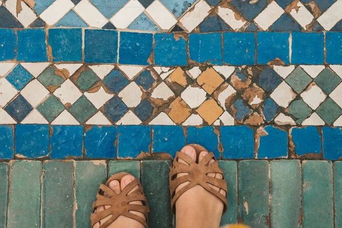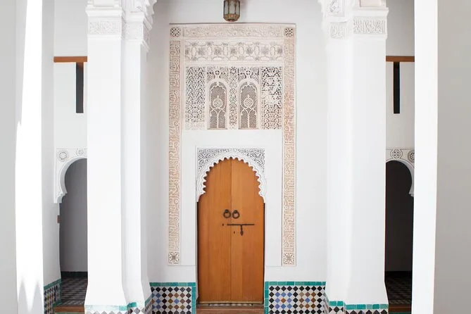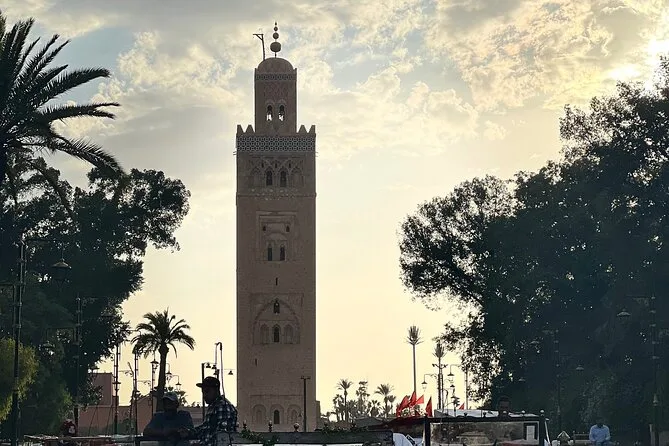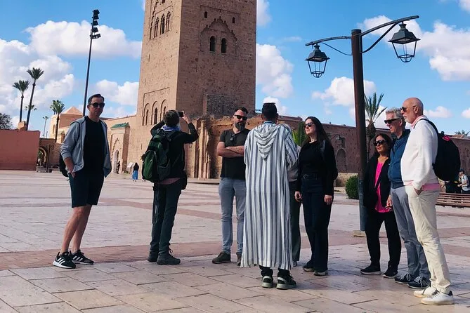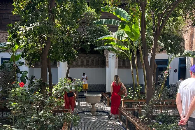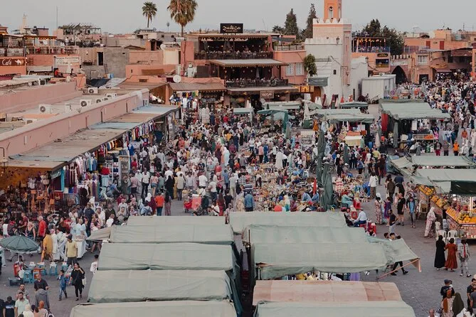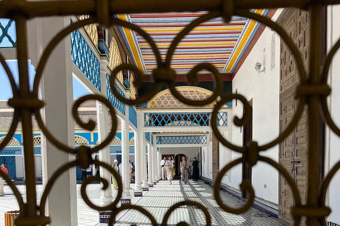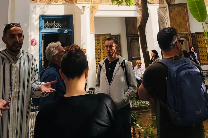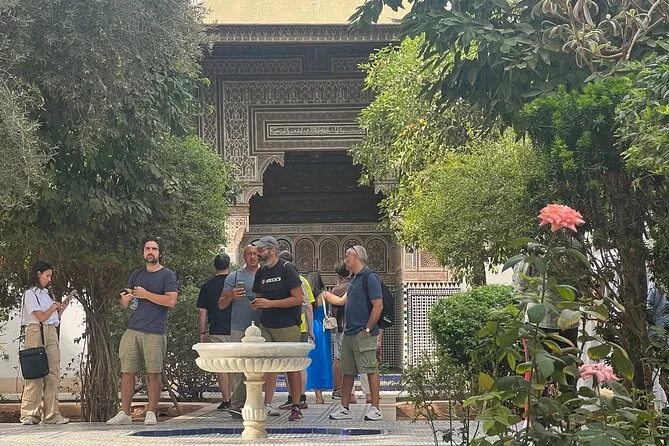 Tu mañana o tarde incluye guía local oficial que te acompaña por el Palacio de la Bahia (entrada aparte), paradas en la plaza Jemaa el-Fna, vista exterior de la mezquita Koutoubia, zona de la mezquita Ben Youssef, paseo histórico por el barrio judío, exploración de diferentes áreas de los famosos zocos de Marrakech y té con dulces en una farmacia bereber, terminando cerca de la plaza.