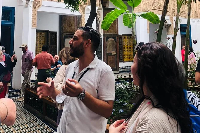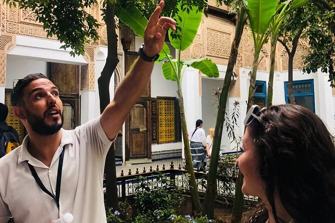 Prueba el dulce té de menta en una farmacia bereber, escucha historias centenarias en el barrio judío, recorre los luminosos pasillos del Palacio de la Bahia y piérdete en el laberinto de los zocos — todo con un guía que da vida a cada rincón. Risas, sorpresas y momentos que recordarás mucho después de irte.