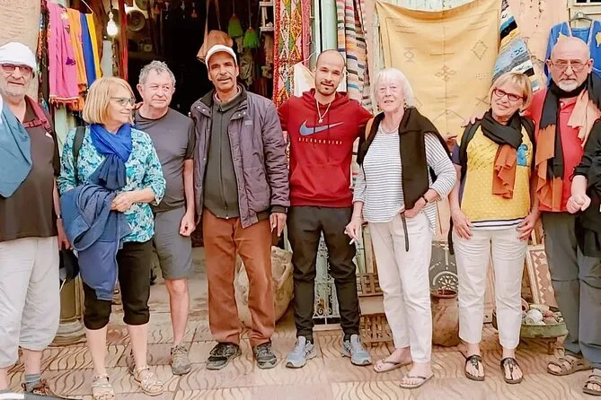 Recorrerás la medina laberíntica de Marrakech con un guía local, explorarás los mosaicos del Palacio de la Bahía y escucharás historias bajo la antigua torre de la mezquita Koutoubia. Con recogida en hotel y un ambiente relajado en grupo, vivirás la auténtica vida marroquí — desde los sonidos del mercado hasta las naranjas frescas — de una forma que recordarás mucho después de volver a casa.