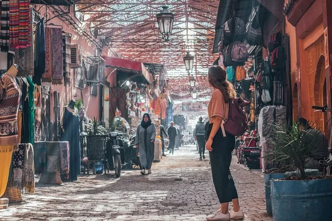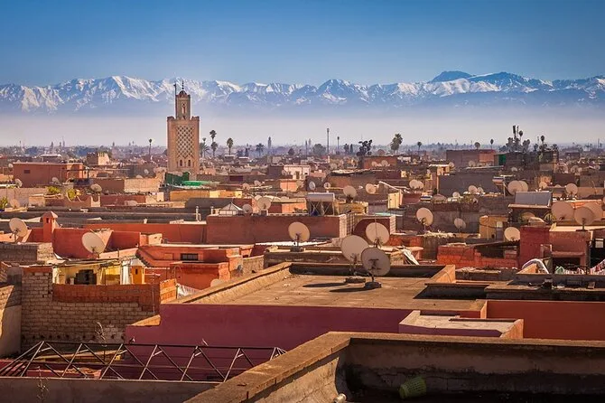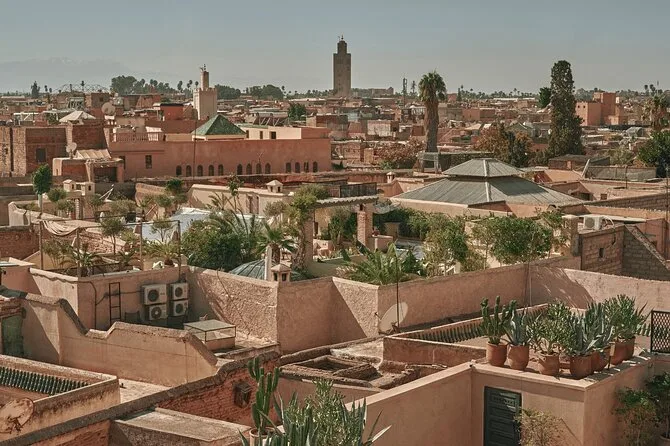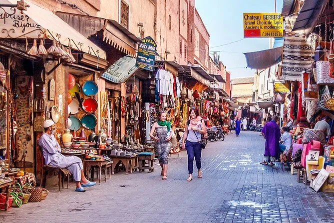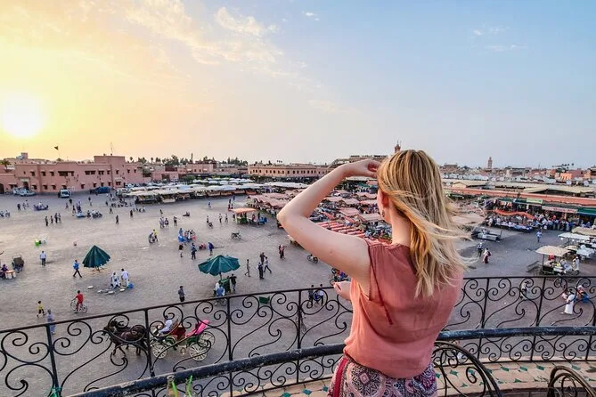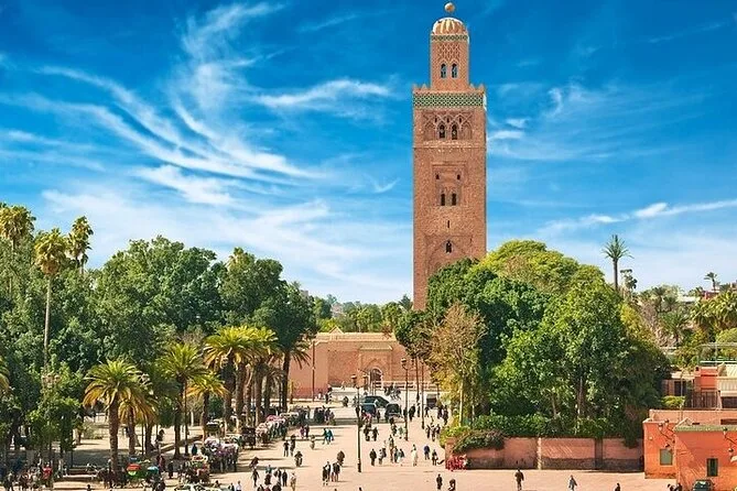 Visitarás la mezquita Koutoubia, el Palacio de la Bahía, la plaza Jemaa el-Fna y la medina.