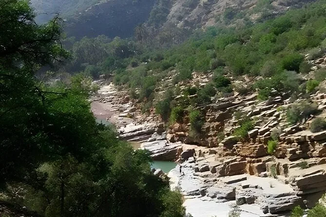 Tu día incluye recogida y regreso al hotel en Agadir (con suplemento para Taghazout o Tamraght), viaje en vehículo con aire acondicionado por las montañas del Atlas con un guía local amable, tiempo para nadar en las piscinas naturales del Valle del Paraíso y almuerzo si eliges la salida más tarde.