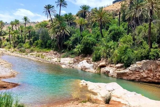 Recorre las montañas del Anti-Atlas con un guía local, haz una parada para tomar té en el Pueblo Banana y llega a la exuberante oasis del Valle del Paraíso. Nada en piscinas naturales rodeadas de palmeras y rocas blanqueadas por el sol, y relájate antes de volver a Agadir. Esta excursión te deja con una sensación de calma y ligereza, como si te hubieras llevado un poco de paz de la montaña.