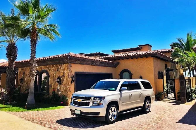 Saldrás del vuelo directo al bullicio de Cabo, para luego subir a una van con aire acondicionado y un chofer local que sabe exactamente a dónde ir. Con agua en mano, evitarás confusiones y llegarás directo a San José del Cabo — quizás hasta te lleves un consejo para tu primera comida en la ciudad. Es ese pequeño momento de calma que recordarás mucho después de aterrizar.