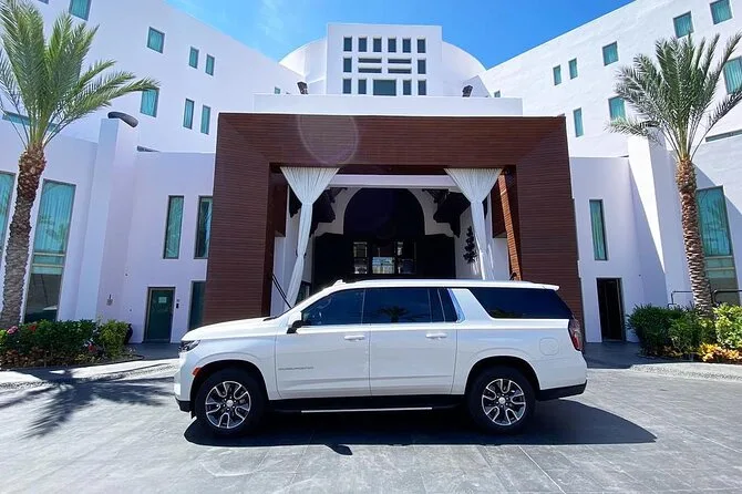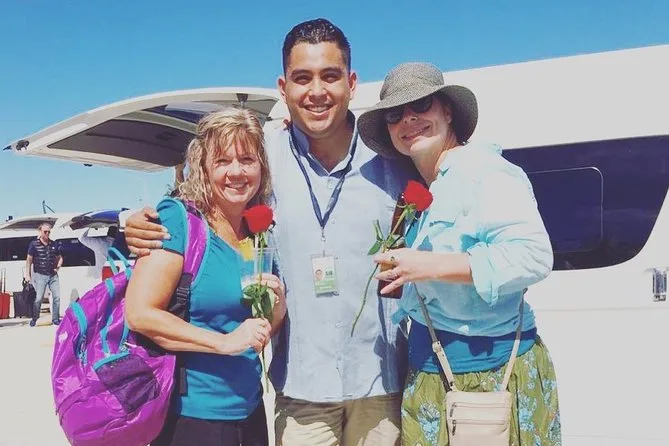 Tu traslado incluye transporte privado desde el aeropuerto SJD a San José del Cabo en vehículo con aire acondicionado, con agua embotellada y bebidas alcohólicas. La recogida es justo en llegadas con una anfitriona local que sostiene un cartel “ALL WAYS CABO CHECKPOINT”; hay acceso para silla de ruedas y asientos para bebés si los necesitas.