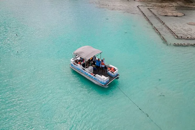 Tu día incluye agua embotellada mientras viajas en una lancha cómoda entre el famoso Canal de los Piratas, Isla de los Pájaros, Cenote Negro, Cenote Esmeralda y Cenote Cocalitos — con tiempo suficiente para nadar en las aguas claras de la laguna antes de regresar a tierra.