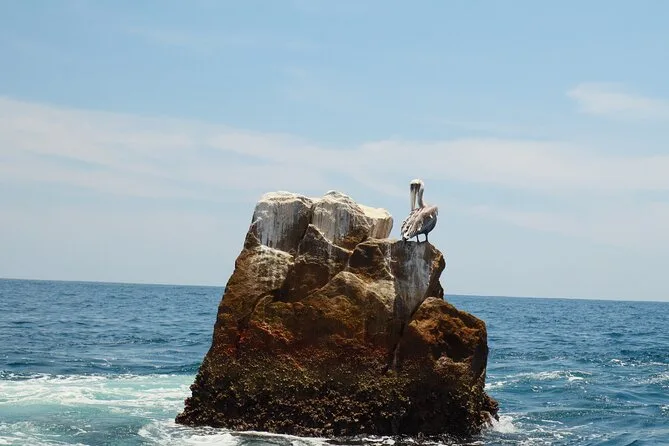 Intenté decir “Pelícano” en español y seguro lo dije mal; Miguel sonrió igual. También hay formas raras en las rocas — una parecía un dedo apuntando hacia arriba (el Dedo de Neptuno), otra alguien dijo que parecía Scooby Doo pero yo todavía no lo veo. Puedes llevar tus propios snacks a bordo, que es genial porque yo tenía fruta del mercado de esa mañana. Si quieres quedarte en alguna de esas playas, te dicen a qué hora pasa el bote para regresar (creo que era a la 1:15, 3:15 o 4:15).