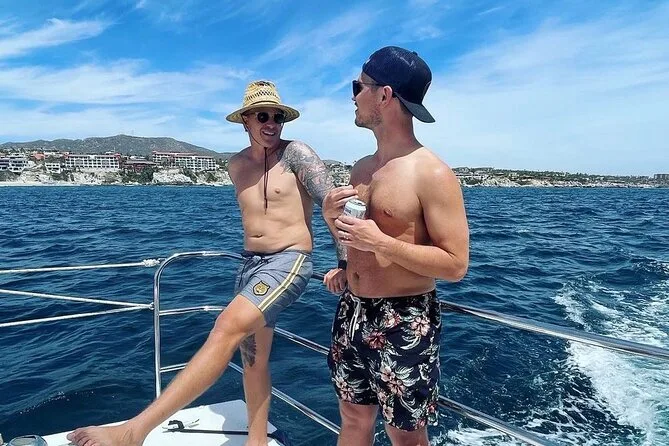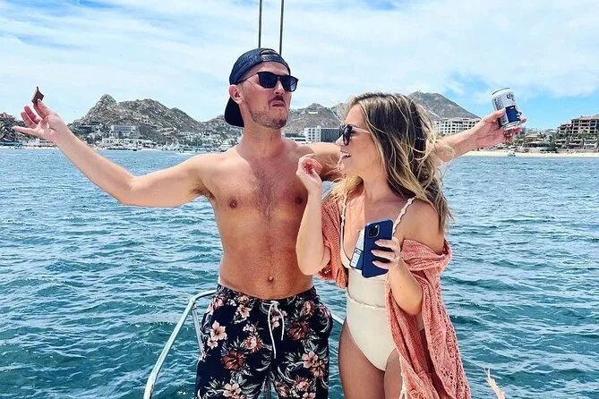 Nuestro guía, Luis, señala Playa del Amor y nos cuenta cómo la marea puede convertirla en Playa del Divorcio si no tienes cuidado — se le escapa una sonrisa al decirlo. Nos acercamos a Roca Pelícano, todos sacando el móvil a la vez. Casi se me cae al mar (momento de pánico). La palabra clave aquí es “tour privado en barco con snorkel Cabo San Lucas”, pero nadie piensa en eso mientras estamos estirados en las redes delanteras del trimarán, con los pies colgando justo sobre las olas. El sistema de sonido suena con una mezcla de reguetón y rock clásico — y siempre hay otra ronda de la barra libre.