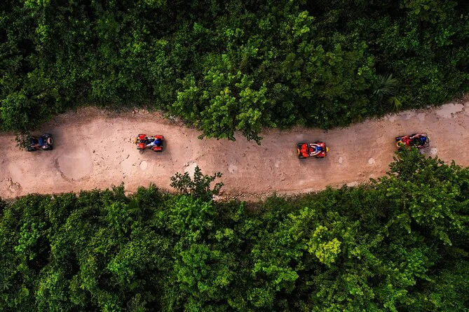 Tu día incluye transporte ida y vuelta desde tu hotel o punto de encuentro cerca de Puerto Morelos o Cancún, entrada a Extreme Adventure Eco Park en la Ruta de los Cenotes, paseos guiados en ATV por senderos de la selva, tres tirolesas interactivas más acceso a plataforma para saltar en un cenote natural donde puedes nadar o chapotear. El almuerzo consiste en tacos frescos con una cata de tequila antes de regresar cansado pero feliz.
