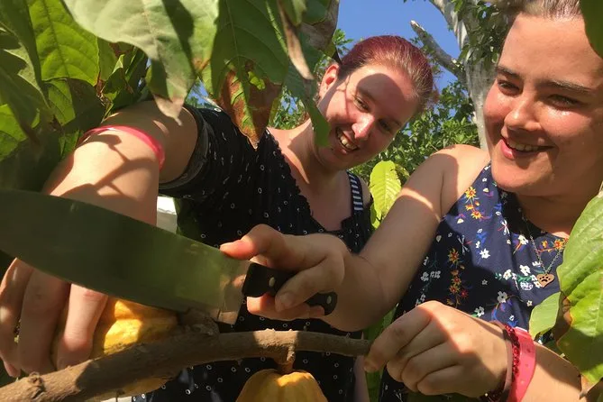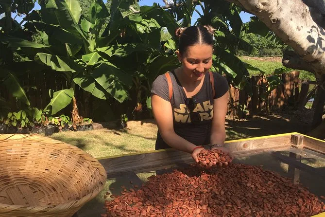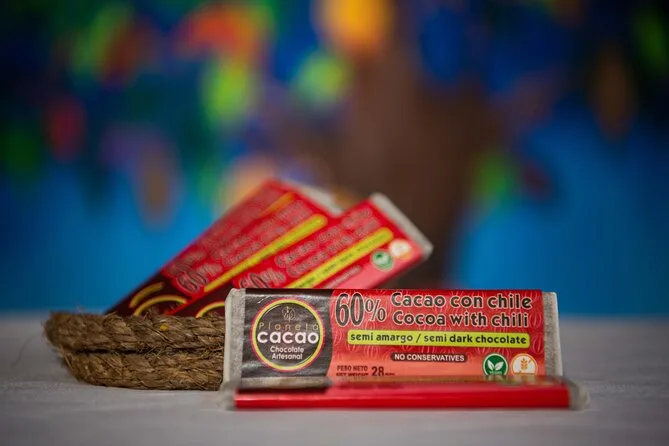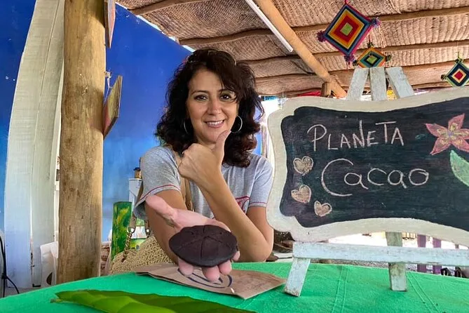 Aprendes sobre la historia del cacao, ves herramientas tradicionales, pruebas bebidas de cacao, participas en un taller práctico de chocolate y degustas productos artesanales.