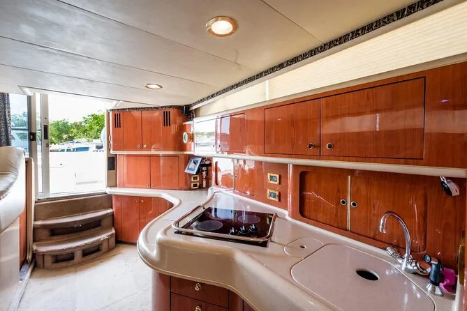 Subimos descalzos a la cubierta en Playa del Carmen, con la sal en el aire y esa luz caribeña que lo ilumina todo. La tripulación nos recibió con sonrisas fáciles—uno de ellos, Carlos, me pasó una margarita antes de que siquiera encontrara mi asiento. Es curioso cómo olvidas la tierra en cuanto el motor empieza a sonar y navegas junto a la costa de Riviera Maya. Me sorprendía sonreír sin razón, solo por el viento, el agua y ese enorme Sea Ray blanco de 15 metros bajo mis pies.
