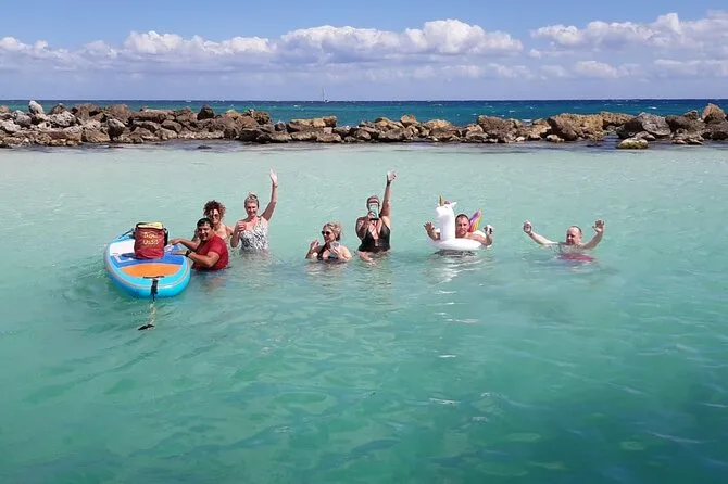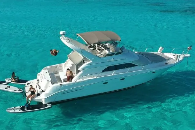 Tu día incluye cuatro horas a bordo de un yate privado Sea Ray de 15 metros navegando la costa de Riviera Maya desde Playa del Carmen hasta Inha Reef para snorkel guiado con todo el equipo; paddle boards; almuerzo con pollo a la parrilla, guacamole y guarniciones mexicanas; barra libre con margaritas y cócteles; música por Bluetooth; todo con una tripulación local amable antes de regresar a tierra.