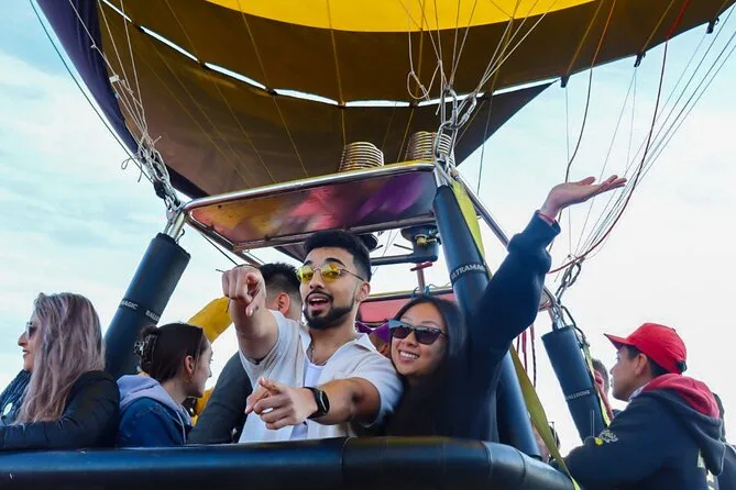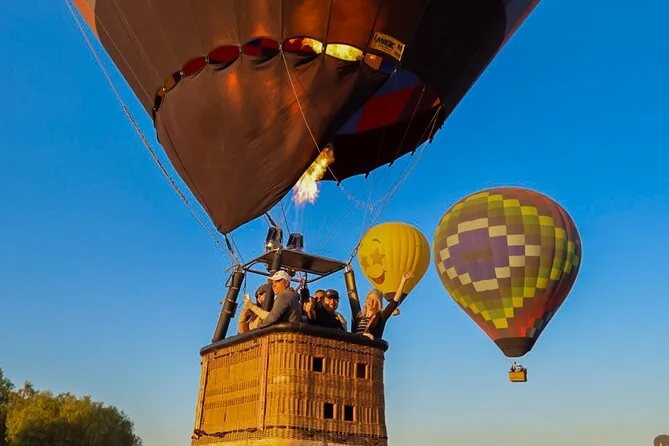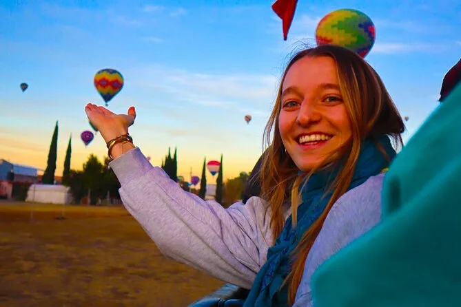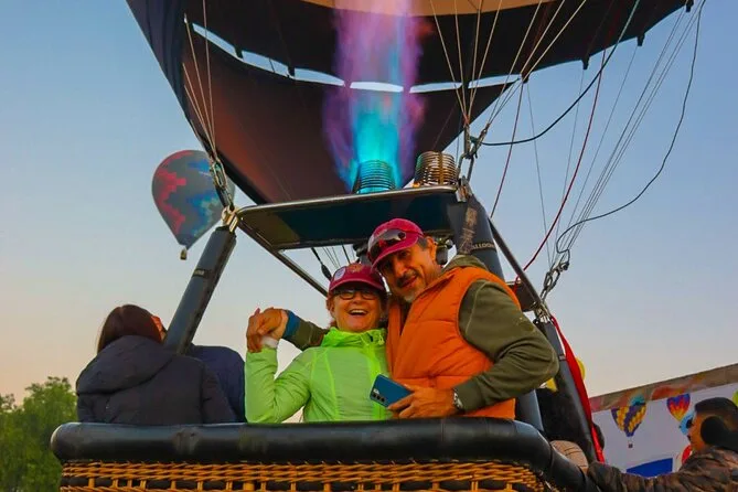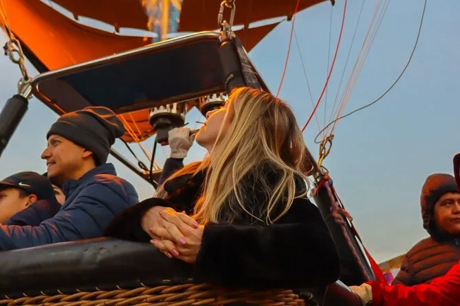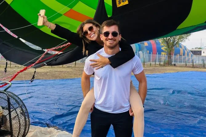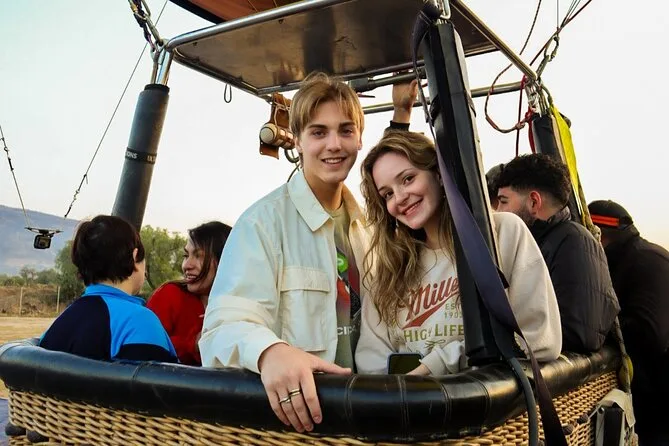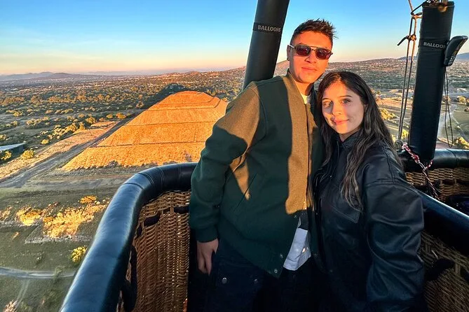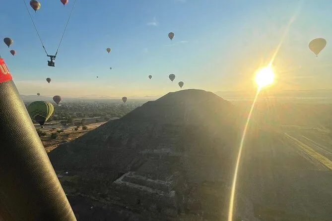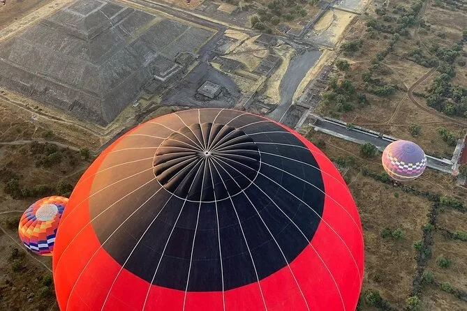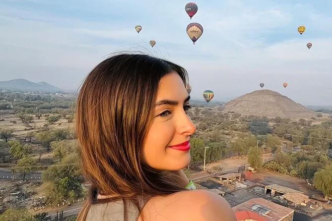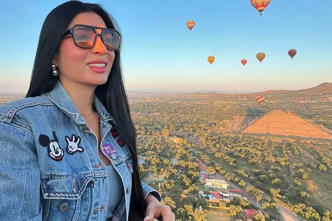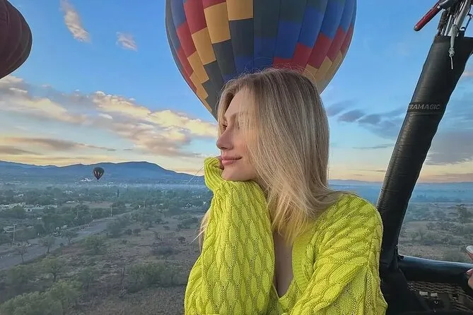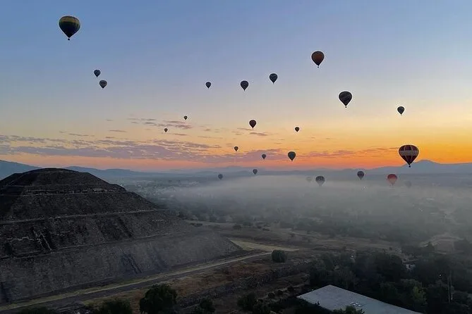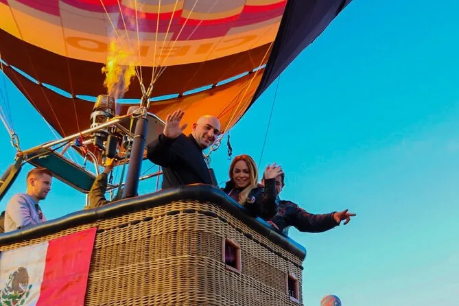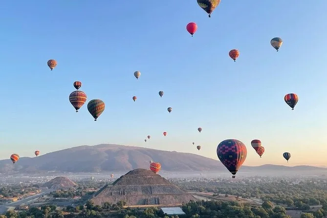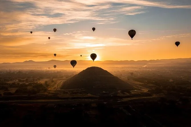 Tu día incluye traslado desde Ciudad de México (si eliges), café al llegar a Teotihuacan, vuelo compartido en globo con pilotos expertos, brindis tradicional al aterrizar, desayuno en restaurante La Cueva (según disponibilidad), degustación de licores locales en cooperativa artesanal con explicación cultural, entrada a la zona arqueológica con guía certificado si reservas todo incluido y regreso a Ciudad de México.