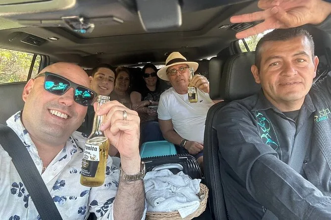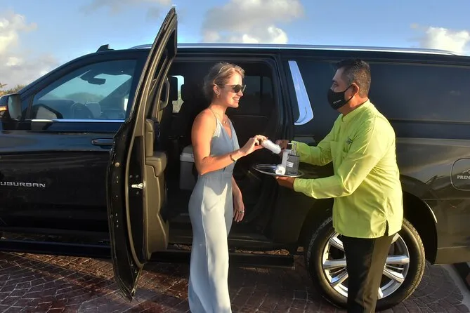 Tu experiencia incluye transporte privado de ida desde el Aeropuerto Internacional de Cancún en un SUV Premium High Country con aire acondicionado y bar con dos cervezas Corona por persona más agua embotellada, WiFi a bordo, toallitas refrescantes al llegar, ayuda con el equipaje y recogida justo afuera de llegadas por un guía local uniformado que esperará todo el tiempo que necesites.