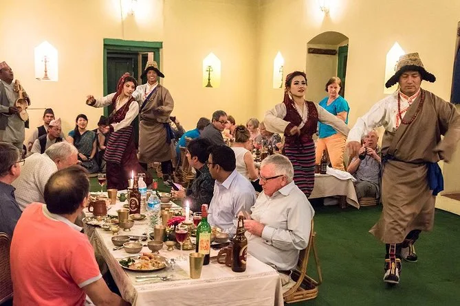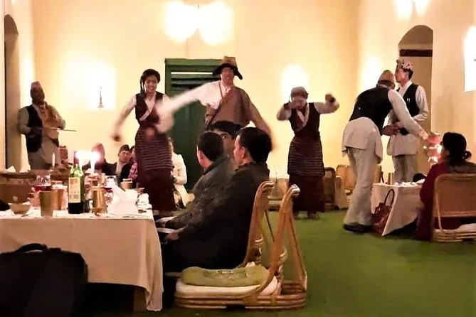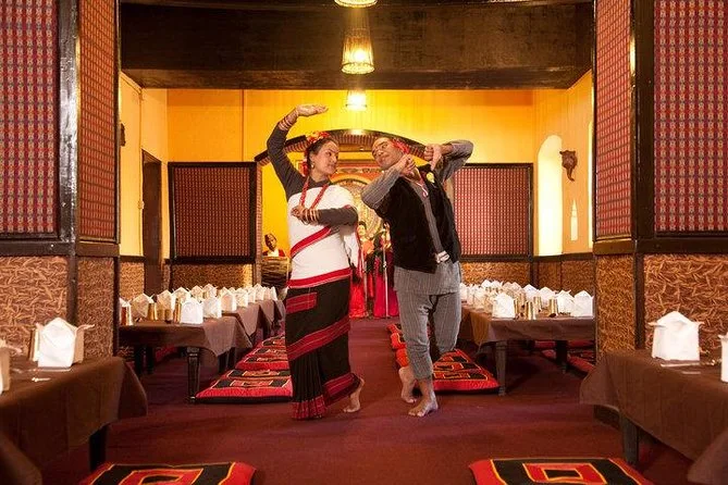 Tu noche incluye transporte privado desde y hacia tu hotel en Katmandú, entrada a Bhojan Griha, una cena nepalí completa con varios platos (incluyendo aperitivos y postre), además de espectáculos de danza en vivo que representan diferentes grupos étnicos de Nepal.