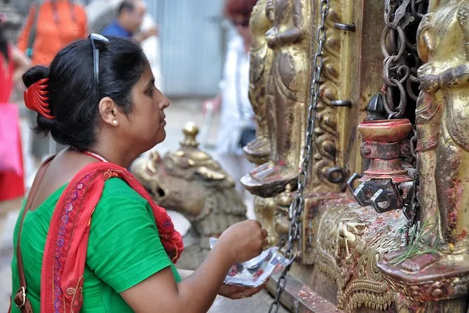 Visitarás templos como Kal Bhairav, Taleju, Kumari Bahal (la diosa viviente), Swet Bhirav, Akash Bhirav y Shiv-Parvati.