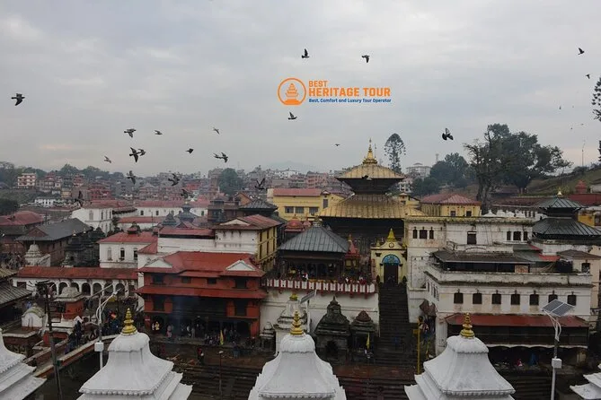 Tu experiencia incluye traslados aeropuerto ida y vuelta, cuatro noches de alojamiento (tres en Katmandú y una en Nagarkot), tours guiados con transporte privado y entradas incluidas, además de una cena de despedida para cerrar tu aventura explorando los sitios patrimoniales de Nepal junto a tu guía local.