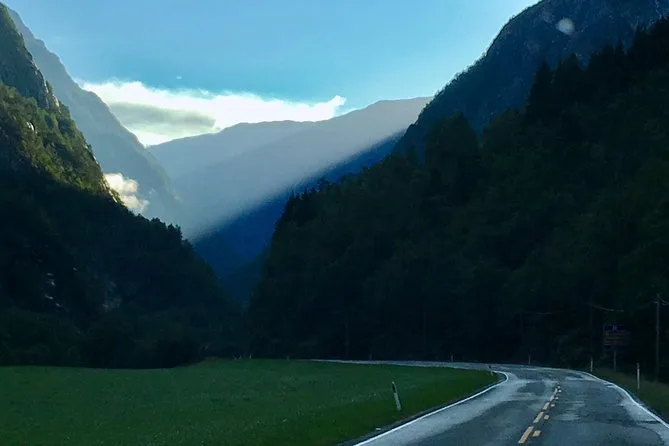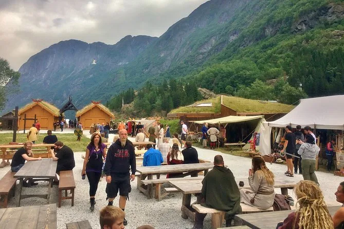 Tu día incluye transporte privado con recogida en Bergen por un conductor-guía profesional (que conoce los mejores puntos), agua embotellada durante el trayecto, todas las entradas a atracciones como Njardarheimr (con opciones de tour guiado regular o privado), impuestos incluidos y muchas oportunidades para parar donde quieras a tomar fotos o respirar aire fresco antes de regresar a Bergen por la tarde.