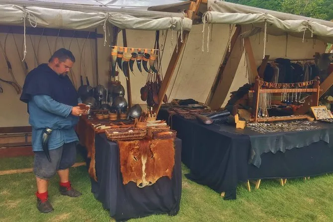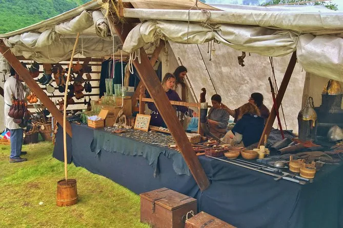 Puedes ver artesanos en acción, comprar artesanías, probar tiro con arco o lanzamiento de hachas y unirte a visitas guiadas por el pueblo.