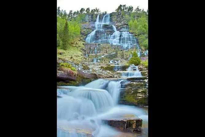 Sí, se hacen paradas en el centro de Voss, la cascada Tvindefossen, el mirador del hotel Stalheim y otras para fotos si lo pides.