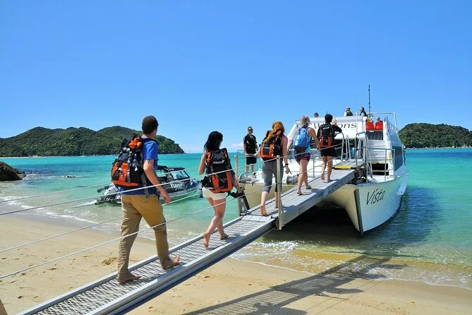 Tu día incluye la entrada al parque nacional y comentarios en vivo a bordo por parte de la amable tripulación local. Puedes elegir quedarte en el barco para un crucero panorámico o bajar en una playa para hacer caminatas guiadas opcionales por tramos de la Gran Caminata de Abel Tasman antes de regresar cómodamente al punto de partida.