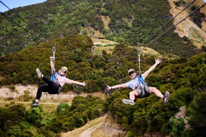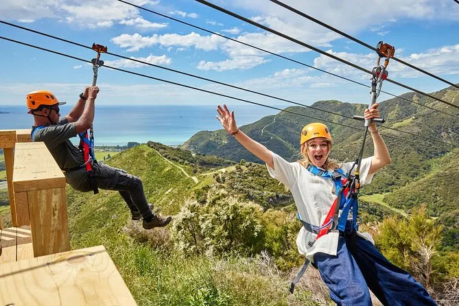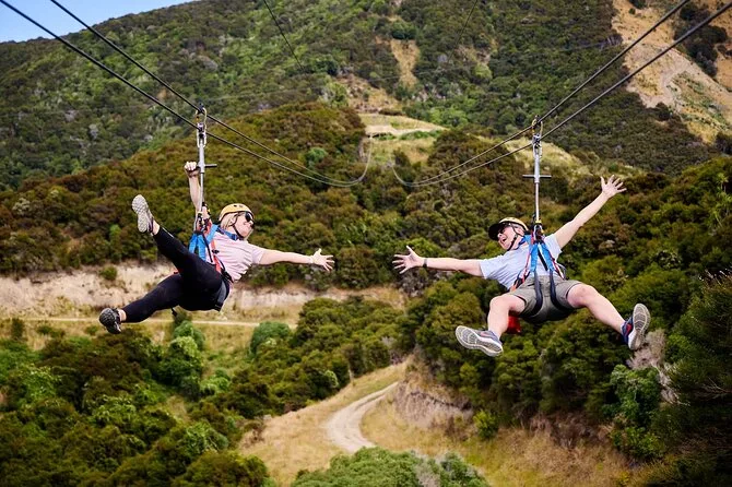 Vuela por cinco tirolinas sobre las tierras de Kaikōura, recorre ríos en un Unimog 4x4 con guía local y explora senderos de bosque nativo a pie. Habrá momentos prácticos como plantar árboles (en temporada) y muchas risas en el camino. Si buscas adrenalina con auténtico sabor neozelandés, este día te queda grabado.