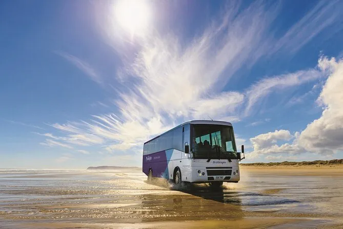 Se utiliza un coach 4x4 especialmente diseñado para conducir por Ninety Mile Beach.