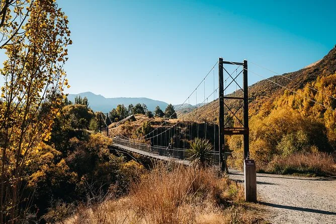 Tu día incluye traslados de ida y vuelta entre Queenstown, Arrowtown y Gibbston Valley; bicicleta de pedales premium (con opción a e-bike); casco, mapa, candados y kit de reparación; además de una sesión de orientación con un guía local antes de recorrer los senderos junto al río hacia las bodegas de Central Otago.
