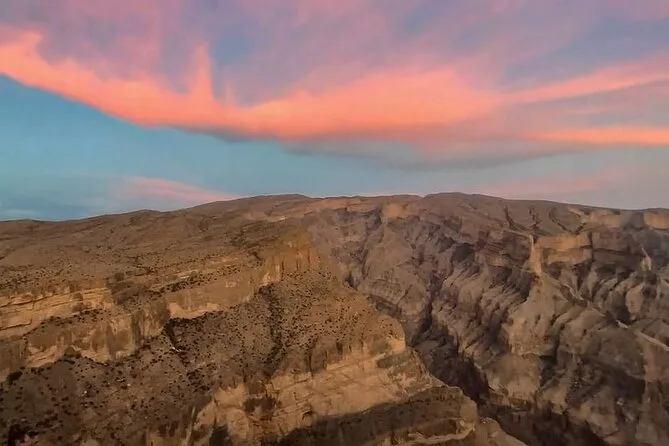 La cena y el desayuno están incluidos en el campamento Sama Heights en Jebel Shams. También tendrás agua embotellada durante todo el viaje.