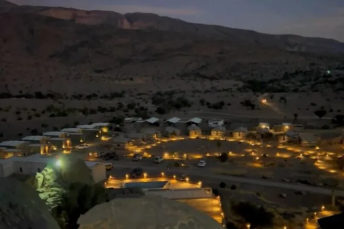 Viajarás en un 4x4 cómodo con un guía omaní que habla inglés y conoce todos los atajos (y las mejores paradas para snacks). Las entradas a todos los fuertes y castillos están incluidas. Siempre tendrás agua embotellada en el coche. La noche incluye cena y desayuno en Sama Heights en Jebel Shams, con opciones de habitación según el tamaño de tu grupo, y recogida y regreso en cualquier punto del área de Mascate.