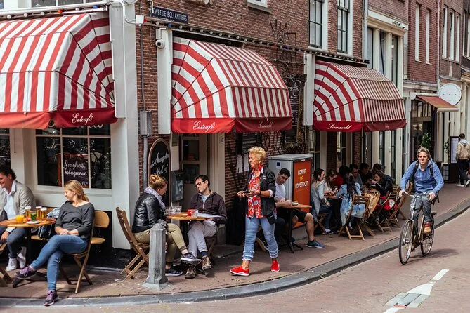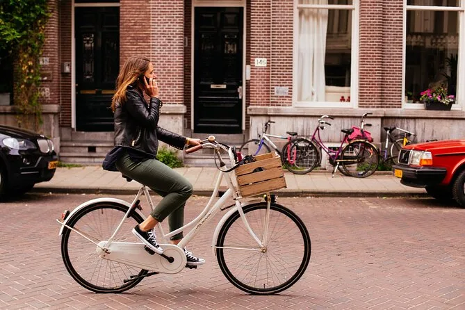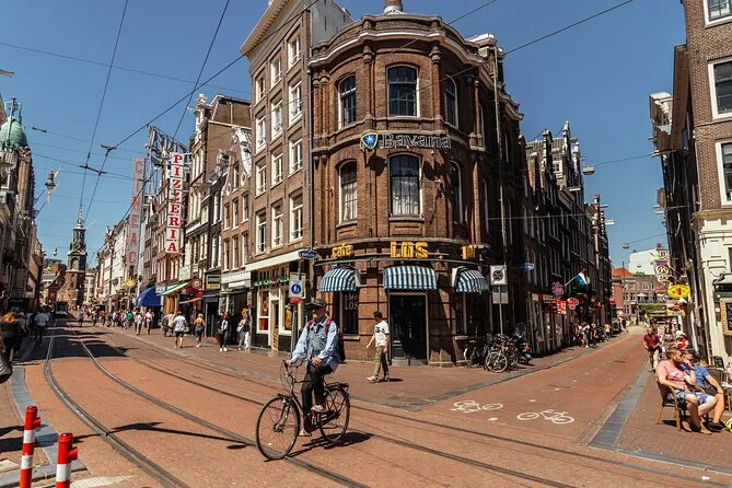 Tu día incluye el alquiler de bici si eliges esa opción, o simplemente caminar junto a tu guía local privado y multilingüe por el centro de Ámsterdam. Durante el recorrido disfrutarás de un snack o bebida local como parte de la experiencia, con paradas flexibles en lugares como Rembrandtplein, Palacio Real, Begijnhof, Bloemenmarkt y más según tus intereses. La experiencia es carbono neutral y hecha a medida para ti y tu grupo, sin multitudes.