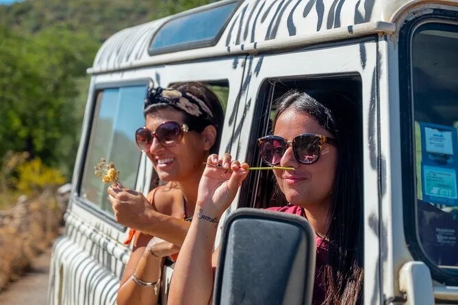Recorrerás los caminos menos transitados del Algarve en un Land Rover con un guía local, probarás licores y miel directamente de pequeñas granjas, podrás bañarte en manantiales cristalinos si te atreves, y pasearás por pueblos tranquilos con historia mora. No es un tour pulido ni lujoso, sino momentos auténticos, risas y sabores que se quedan contigo mucho después.