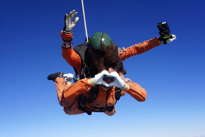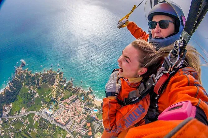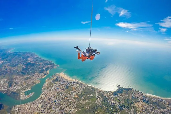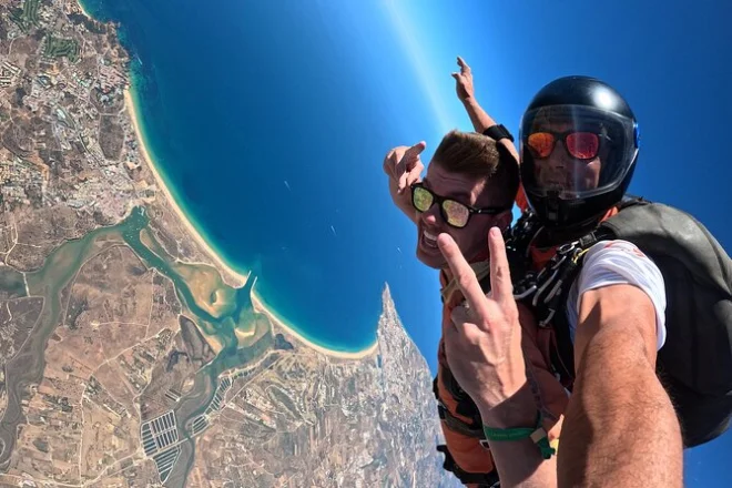 Tu día incluye todo el equipo necesario para el salto: traje y gafas, una breve orientación con tu instructor en el aeródromo de Portimão, el salto en tándem desde 15,000 pies sobre la costa del Algarve y un certificado conmemorativo tras aterrizar — además de gafas de sol si añades vídeo a tu reserva.