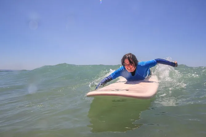Te recogen en Lisboa y te llevan a Costa da Caparica para una clase práctica de surf en grupo pequeño. Todo el equipo está incluido — traje y tabla — y un fotógrafo te acompaña en el agua para capturar tus mejores (y peores) momentos. Sentirás la primera ola fría, aprenderás con un instructor local y volverás a casa salado y feliz.