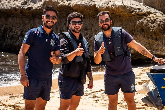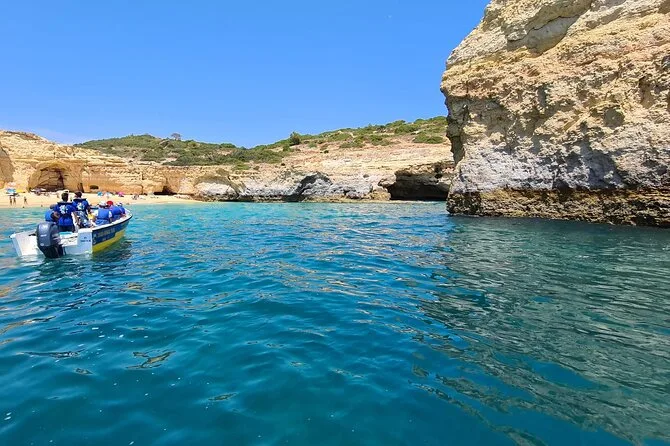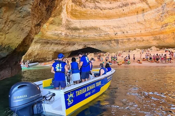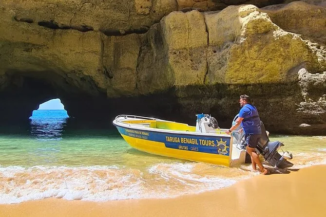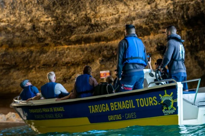 Tu día incluye embarque en la playa de Benagil con un patrón cualificado que te guiará por hasta 20 cuevas y playas del Algarve como la Cueva de Benagil y Praia da Marinha. Todos los impuestos y tasas están incluidos, así como el equipo de seguridad como los chalecos salvavidas; tu guía local compartirá historias durante el recorrido antes de regresar a tierra en Benagil.