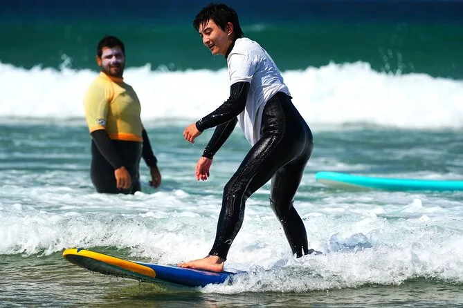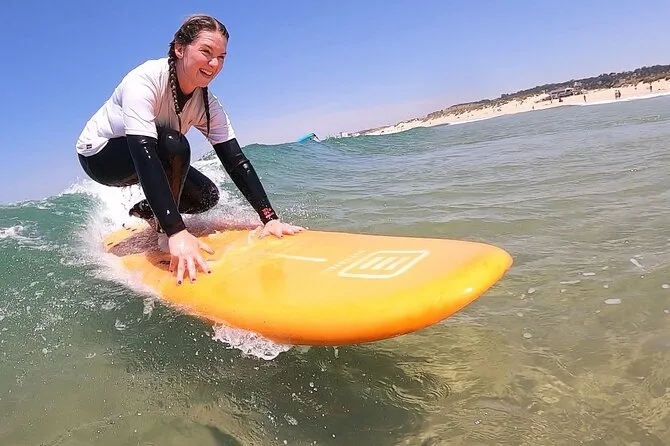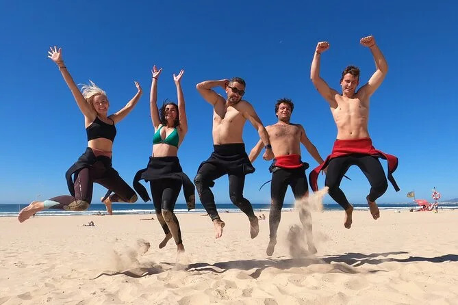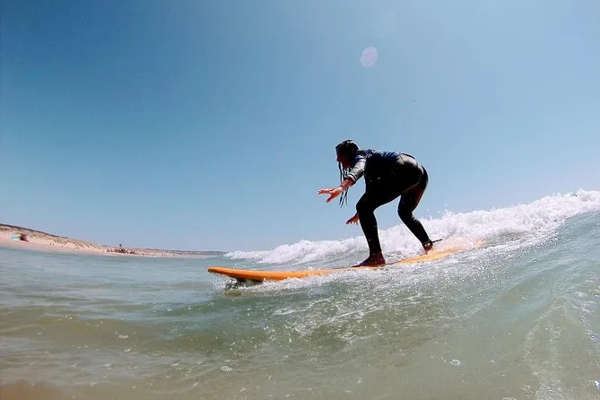 Remarás desde el centro de Lisboa hasta playas salvajes con un surfista local que te guiará en cada paso — desde elegir tu tabla hasta celebrar tu primer momento de pie. Aire salado, arenas vacías en Costa da Caparica, equipo completo incluido (sí, traje también) y dos horas de surf auténtico con mucho ánimo durante todo el recorrido.
