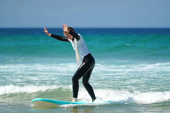 Tu día incluye recogida en el zoológico de Lisboa, transporte ida y vuelta a Costa da Caparica u otra playa cercana elegida por tu guía local según las condiciones, instrucción certificada para cualquier nivel (principiante o avanzado), uso completo de traje y tabla durante dos horas de sesión, además de seguro deportivo durante todo el tiempo en el agua.