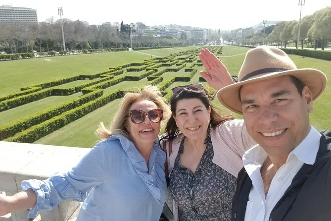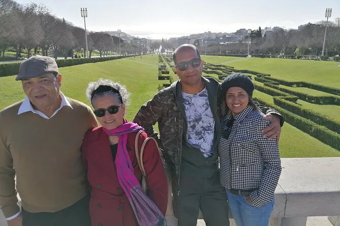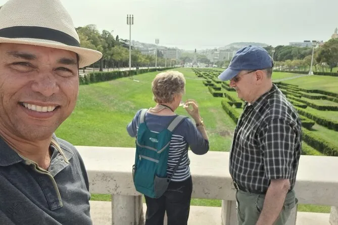 Empezamos la mañana en el Parque Eduardo VII—los locales lo llaman “Parque Eduardo Sete.” El césped aún estaba húmedo por la llovizna de la noche anterior, y se olía la tierra mezclada con el aroma de pasteles frescos de un quiosco cercano. Nuestra guía, Joana, nos señaló cómo el parque se alinea perfectamente con la Avenida da Liberdade, que se extiende hasta el río. Nunca me había fijado en eso antes.