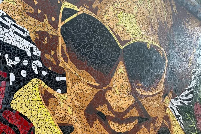 Después fuimos a Santurce y, la verdad, no esperaba tanta arte en un solo lugar. Murales por todos lados — algunos con colores salvajes, otros solo caras en blanco y negro que te miran fijo. Caminamos unas cuadras mientras el guía contaba historias detrás de cada obra (solo recuerdo a medias una sobre un gallo). No había mucha gente, pero se escuchaba música saliendo de los bares, aunque fuera de día. En un momento alguien gritó algo amistoso desde el otro lado de la calle; el guía saludó como si conociera a todos.