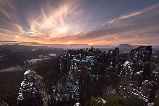 Caminarás por estrechos pasajes de arenisca en las Rocas de Tisa (sí, donde se filmó Narnia), cruzarás a Alemania para disfrutar vistas panorámicas desde el Puente Bastei y compartirás historias con tu guía local durante el almuerzo. Con recogida en hotel y todo organizado, es una excursión desde Praga que recordarás mucho tiempo después de volver a casa.