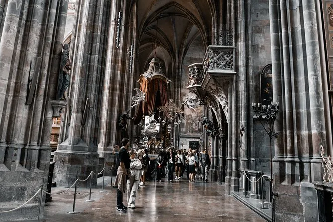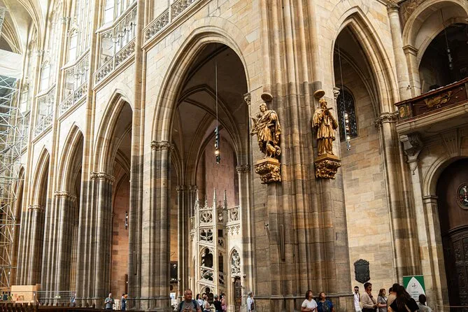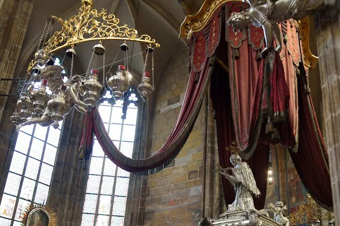 Visitarás la Catedral de San Vito, el Antiguo Palacio Real (incluido el Salón Vladislav), la Basílica de San Jorge y el Callejón del Oro.