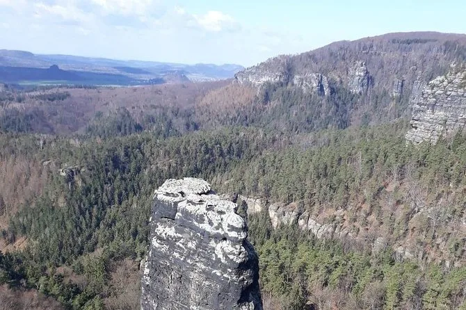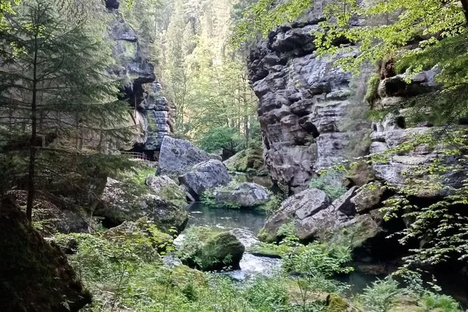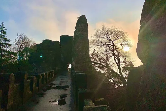 Cruza fronteras sin darte cuenta mientras caminas por el Puente Bastei sobre el Elba y haces senderismo hasta el arco de arenisca del Portal de Pravčice. Disfruta charlas reales con tu guía local, una comida checa casera en un restaurante familiar y momentos de asombro inesperados.
