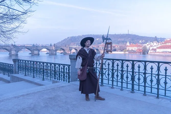Tu noche incluye todos los impuestos y tarifas, además de la compañía de un experto local disfrazado que revive historias centenarias mientras caminas desde la Torre de la Pólvora por el Casco Antiguo hasta el Puente Carlos—con una degustación de pan tradicional en el camino y el cierre junto al río.