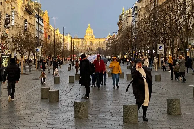 Recorre la Plaza Wenceslao, Plaza de la Ciudad Vieja, Plaza de la República, y hace paradas en una cantina de los 70 y el búnker nuclear.