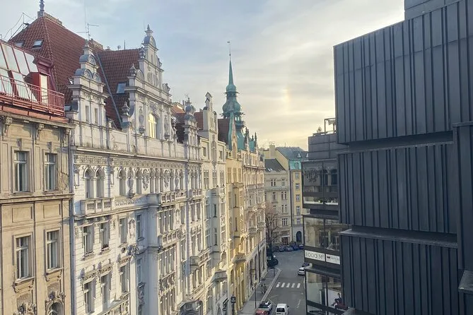Después llegamos a la Plaza de la Ciudad Vieja—la había visitado antes, pero nunca me fijé en cómo la arquitectura soviética aún se asoma si miras hacia arriba. Jirka contó cómo sus padres hacían largas colas por un plátano (se rió cuando le pregunté si exageraba—no lo hacía). También pasamos por la Plaza de la República, escuchando sobre el golpe de 1948 y todas esas capas de historia apiladas unas sobre otras. Es raro lo normal que parece todo ahora.